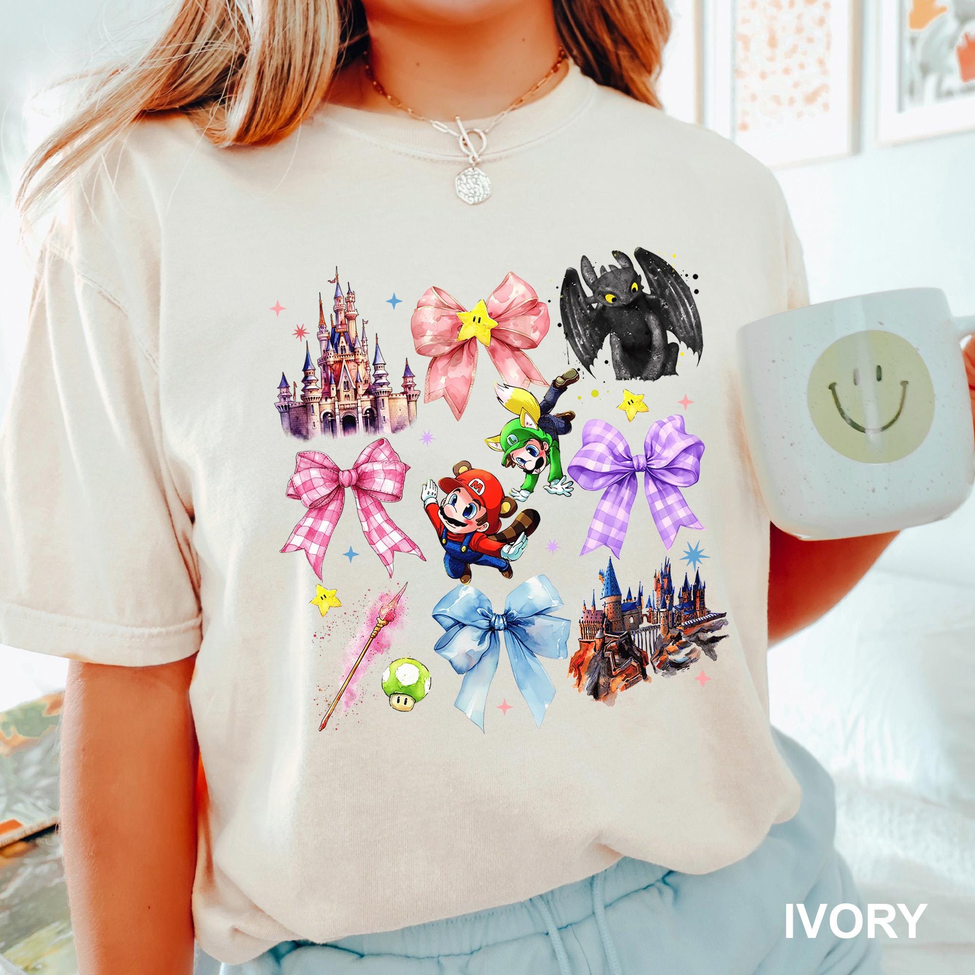 Coquette Bows Epic Universe Shirt, Comfort Colors, Mario Character Shirt, Universal Studios Tee, Family Universe Park Trip Shirt