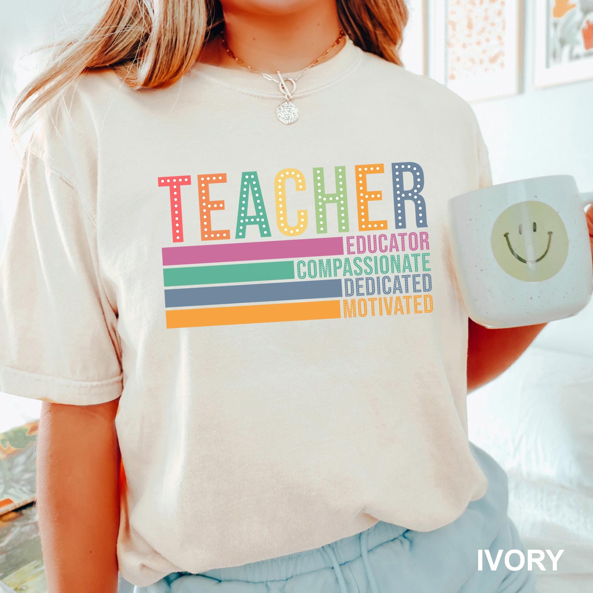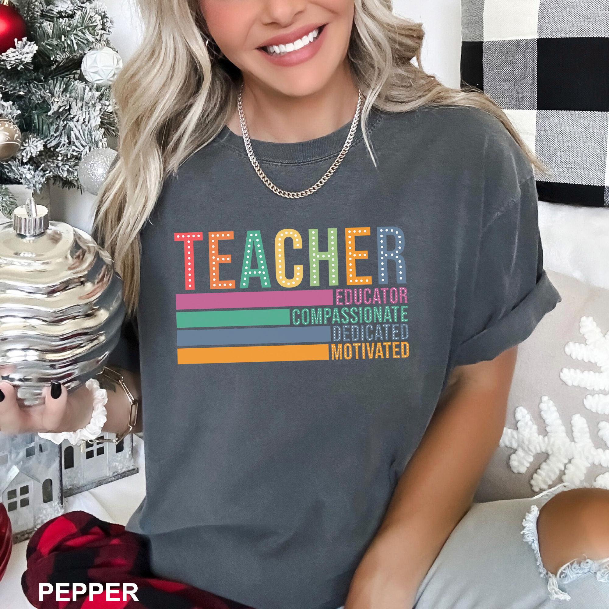 Teacher Appreciation Shirt, Comfort Colors,Teacher Compassionate Dedicated Motivated Educator Shirt, Teacher Life Shirt, Teacher Tee